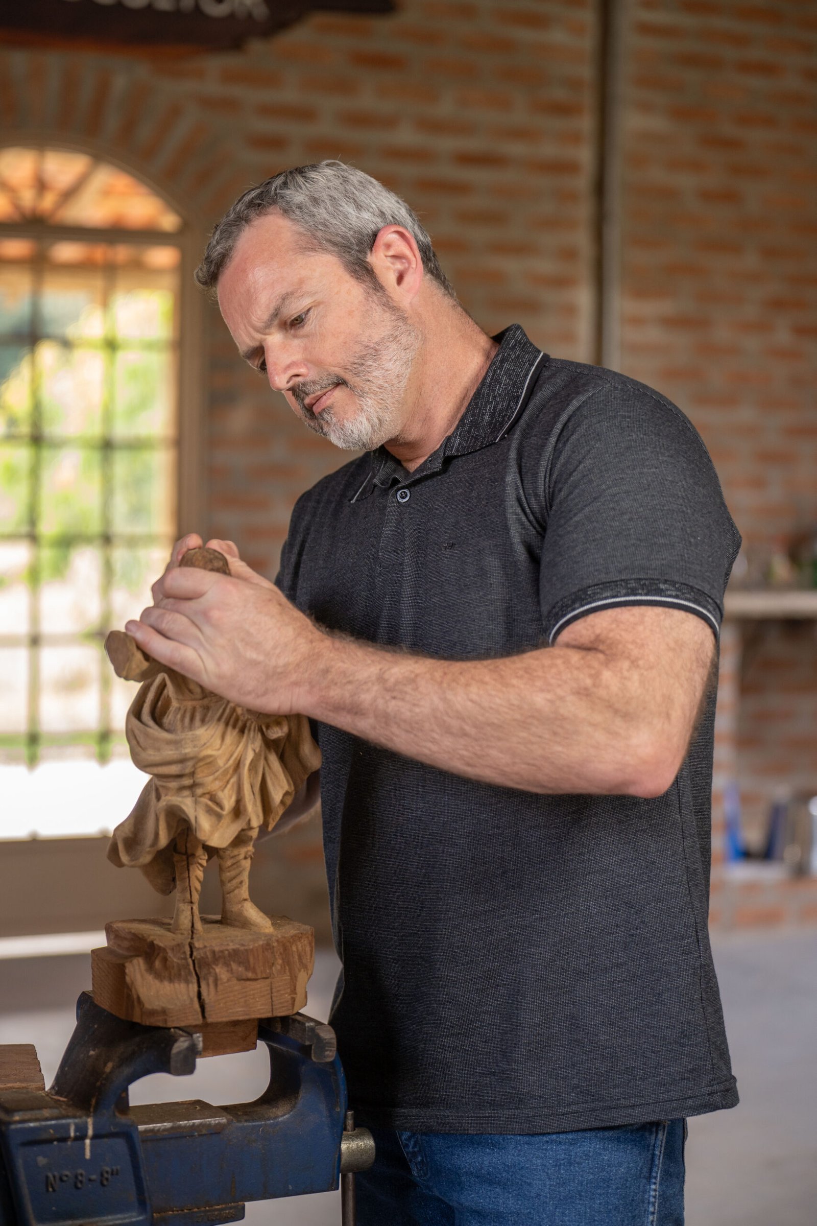 A prática artística combina escultura manual, estudo iconográfico, pesquisa formal e o uso criterioso de recursos contemporâneos, preservando a expressividade, a integridade histórica e o caráter autoral do trabalho.